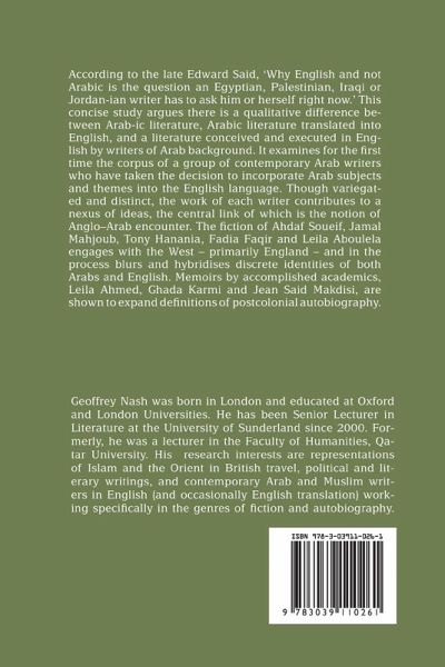 According to the late Edward Said, 'Why English and not Arabic is the question an Egyptian, Palestinian, Iraqi or Jordanian writer has to ask him or herself right now.' This concise study argues there is a qualitative difference between Arabic literature, Arabic literature translated into English, and a literature conceived and executed in English by writers of Arab background. It examines for the first time the corpus of a group of contemporary Arab writers who have taken the decision to incorporate Arab subjects and themes into the English language. Though variegated and distinct, the work of each writer contributes to a nexus of ideas, the central link of which is the notion of Anglo-Arab encounter. The fiction of Ahdaf Soueif, Jamal Mahjoub, Tony Hanania, Fadia Faqir and Leila Aboulela engages with the West - primarily England - and in the process blurs and hybridises discrete identities of both Arabs and English. Memoirs by accomplished academics, Leila Ahmed, Ghada Karmi and Jean Said Makdisi, are shown to expand definitions of postcolonial autobiography.