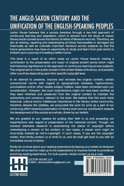 The Anglo-Saxon Century And The Unification Of The English-Speaking Peoples This book is a result of an effort made by us towards making a contribution to the preservation and repair of original classic literature. In an attempt to preserve, improve and recreate the original content, we have worked towards: 1. Type-setting & Reformatting: The complete work has been re-designed via professional layout, formatting and type-setting tools to re-create the same edition with rich typography, graphics, high quality images, and table elements, giving our readers the feel of holding a 'fresh and newly' reprinted and/or revised edition, as opposed to other scanned & printed (Optical Character Recognition - OCR) reproductions. 2. Correction of imperfections: As the work was re-created from the scratch, therefore, it was vetted to rectify certain conventional norms with regard to typographical mistakes, hyphenations, punctuations, blurred images, missing content/pages, and/or other related subject matters, upon our consideration. Every attempt was made to rectify the imperfections related to omitted constructs in the original edition via other references. However, a few of such imperfections which could not be rectified due to intentional\unintentional omission of content in the original edition, were inherited and preserved from the original work to maintain the authenticity and construct, relevant to the work. We believe that this work holds historical, cultural and/or intellectual importance in the literary works community, therefore despite the oddities, we accounted the work for print as a part of our continuing effort towards preservation of literary work and our contribution towards the development of the society as a whole, driven by our beliefs. We are grateful to our readers for putting their faith in us and accepting our imperfections with regard to preservation of the historical content. HAPPY READING!