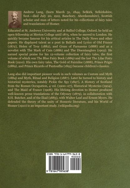 Andrew Lang, (born March 31, 1844, Selkirk, Selkirkshire, Scot.--died July 20, 1912, Banchory, Aberdeenshire), Scottish scholar and man of letters noted for his collections of fairy tales and translations of Homer. Educated at St. Andrews University and at Balliol College, Oxford, he held an open fellowship at Merton College until 1875, when he moved to London. He quickly became famous for his critical articles in The Daily News and other papers. He displayed talent as a poet in Ballads and Lyrics of Old France (1872), Helen of Troy (1882), and Grass of Parnassus (1888) and as a novelist with The Mark of Cain (1886) and The Disentanglers (1902). He earned special praise for his 12-volume collection of fairy tales, the first volume of which was The Blue Fairy Book (1889) and the last The Lilac Fairy Book (1910). His own fairy tales, The Gold of Fairnilee (1888), Prince Prigio (1889), and Prince Ricardo of Pantouflia (1893) became children's classics. Lang also did important pioneer work in such volumes as Custom and Myth (1884) and Myth, Ritual and Religion (1887). Later he turned to history and historical mysteries, notably Pickle the Spy (1897), A History of Scotland from the Roman Occupation, 4 vol. (1900-07), Historical Mysteries (1904), and The Maid of France (1908). His lifelong devotion to Homer produced well-known prose translations of the Odyssey (1879), in collaboration with S.H. Butcher, and of the Iliad (1883), with Walter Leaf and Ernest Myers. He defended the theory of the unity of Homeric literature, and his World of Homer (1910) is an important study. (wikipedia.org)