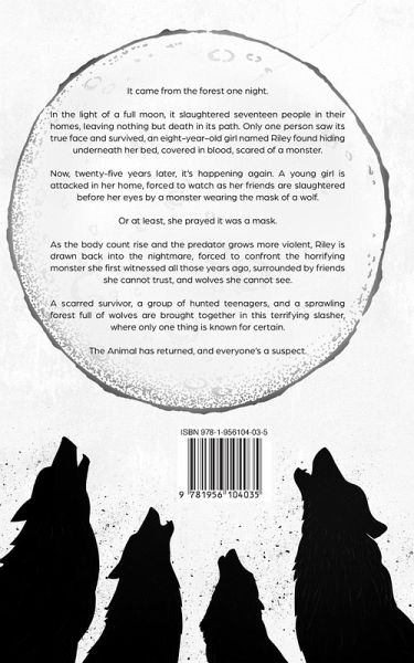 It came from the forest one night. In the light of a full moon, it slaughtered seventeen people in their homes, leaving nothing but death in its path. Only one person saw its true face and survived, an eight-year-old girl named Riley found hiding underneath her bed, covered in blood, scared of a monster. Now, twenty-five years later, it's happening again. A young girl is attacked in her home, forced to watch as her friends are slaughtered before her eyes by a monster wearing the mask of a wolf. Or at least, she prayed it was a mask. As the body count rises and the predator grows more violent, Riley is drawn back into the nightmare, forced to confront the horrifying monster she first witnessed all those years ago, surrounded by friends she cannot trust, and wolves she cannot see. A scarred survivor, a group of hunted teenagers, and a sprawling forest full of wolves are brought together in this terrifying slasher, where only one thing is known for certain. The Animal has returned, and everyone's a suspect.