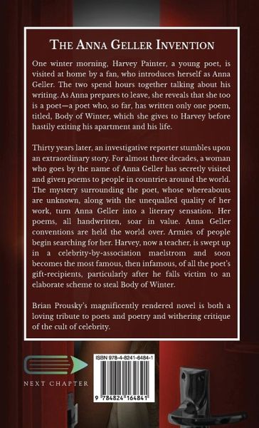 One winter morning, Harvey Painter, a young poet, is visited at home by a fan, who introduces herself as Anna Geller. The two spend hours together talking about his writing. As Anna prepares to leave, she reveals that she too is a poet-a poet who, so far, has written only one poem, titled, Body of Winter, which she gives to Harvey before hastily exiting his apartment and his life. Thirty years later, an investigative reporter stumbles upon an extraordinary story. For almost three decades, a woman who goes by the name of Anna Geller has secretly visited and given poems to people in countries around the world. The mystery surrounding the poet, whose whereabouts are unknown, along with the unequalled quality of her work, turn Anna Geller into a literary sensation. Her poems, all handwritten, soar in value. Anna Geller conventions are held the world over. Armies of people begin searching for her. Harvey, now a teacher, is swept up in a celebrity-by-association maelstrom and soon becomes the most famous, then infamous, of all the poet's gift-recipients, particularly after he falls victim to an elaborate scheme to steal Body of Winter. Brian Prousky's magnificently rendered novel is both a loving tribute to poets and poetry and withering critique of the cult of celebrity.