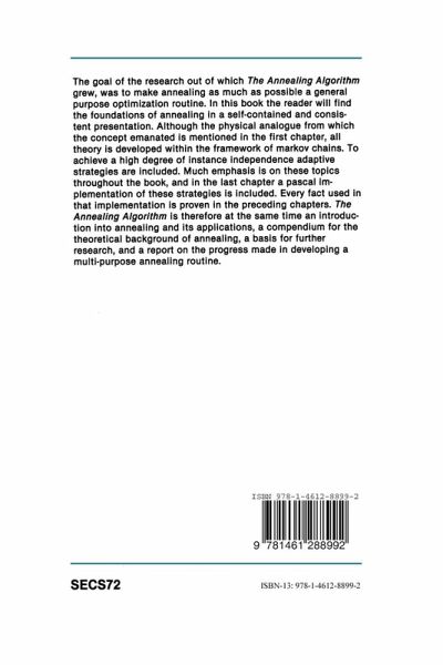 The goal of the research out of which this monograph grew, was to make annealing as much as possible a general purpose optimization routine. At first glance this may seem a straight-forward task, for the formulation of its concept suggests applicability to any combinatorial optimization problem. All that is needed to run annealing on such a problem is a unique representation for each configuration, a procedure for measuring its quality, and a neighbor relation. Much more is needed however for obtaining acceptable results consistently in a reasonably short time. It is even doubtful whether the problem can be formulated such that annealing becomes an adequate approach for all instances of an optimization problem. Questions such as what is the best formulation for a given instance, and how should the process be controlled, have to be answered. Although much progress has been made in the years after the introduction of the concept into the field of combinatorial optimization in 1981,some important questions still do not have a definitive answer. In this book the reader will find the foundations of annealing in a self-contained and consistent presentation. Although the physical analogue from which the con cept emanated is mentioned in the first chapter, all theory is developed within the framework of markov chains. To achieve a high degree of instance independence adaptive strategies are introduced.