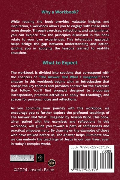 Joseph Brice dives deep into the transformative power of faith-filled prayer and the significant role our words play in shaping our reality and fulfilling our divine purpose. When faith is connected to what we speak it is a profound exploration of how the words we choose can either build up or tear down, not just in our lives, but in the lives of those around us. The Bible is replete with teachings on the power of the tongue, emphasizing that life and death are indeed in the power of our words. Jesus Himself demonstrated the profound impact of speaking with faith, whether calming a storm, healing the sick, or raising the dead. In this workbook, we will unpack the biblical principles that underscore the importance of aligning our speech with our faith. We will examine the stories of individuals who harnessed the power of their words to effect change and bring about God's promises. One such example is the story of the centurion, whose faith in Jesus' spoken word led to the miraculous healing of his servant. The workbook is designed to help you harness the power of prayer and your own words through practical exercises, reflective questions, and thought-provoking discussions. These activities are crafted to encourage you to examine the language you use daily and to consciously choose words that reflect your faith and trust in God's promises. Through this book, you will be challenged to speak with intentionality and conviction, understanding that your words can influence outcomes and manifest the divine will in your life. As you engage with the content, you will learn to replace negative speech patterns with declarations of faith, hope, and love. Embrace this journey with a heart ready to be transformed. By developing the faith to speak life and truth into your circumstances, you can unlock the power of God's word in your own life. Let your speech become a testament to your faith, and witness the remarkable changes that follow. As you work through the exercises and reflections in this workbook, may you find your voice strengthened and your faith emboldened. May your words become a powerful force for good, aligning with the divine purpose God has set for you. As you conclude your journey with this workbook, we encourage you to further explore the profound teachings of The Answer: Not What I Imagined by Joseph Brice. This book, when paired with the exercises and reflections in this workbook, will guide you toward a path of selflessness and practical empowerment. By drawing on the examples of those who have walked before us, The Answer helps illuminate how we can embody the teachings of Jesus in our own lives, even in today's complex world. Remember, each one of us holds the potential to be more than just a problem in the lives of those around us-we can be someone's answer. As you apply the insights gained from both the book and the workbook, you'll discover how to transform challenges into opportunities for growth and service. May this journey inspire you to live with purpose, embrace your unique role, and contribute positively to the lives of others. Your potential to be a beacon of hope and solution in a world that needs it is boundless. Thank you for allowing this exploration to be a part of your path to becoming more like Jesus and fulfilling your divine purpose.