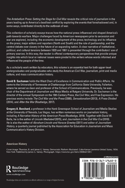The Antebellum Press: Setting the Stage for Civil War reveals the critical role of journalism in the years leading up to America's deadliest conflict by exploring the events that foreshadowed and, in some ways, contributed directly to the outbreak of war.