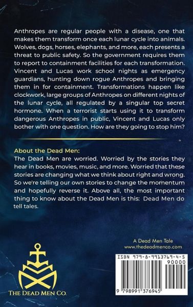 Anthropes are regular people with a disease, one that makes them transform once each lunar cycle into animals. Wolves, dogs, horses, elephants, and more, each presents a threat to public safety. So the government requires them to report to containment facilities for each transformation. Vincent and Lucas work school nights as emergency guardians, hunting down rogue Anthropes and bringing them in for containment. Transformations happen like clockwork, large groups of Anthropes on different nights of the lunar cycle, all regulated by a singular top secret hormone. When a terrorist starts using it to transform dangerous Anthropes in public, Vincent and Lucas only bother with one question. How are they going to stop him?