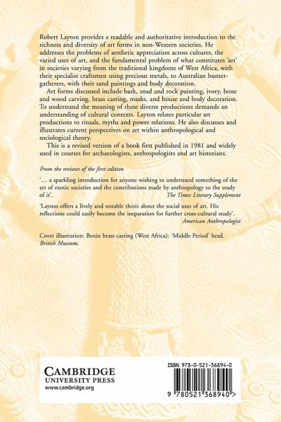 Robert Layton provides an authoritative introduction to the richness and diversity of art forms in non-Western societies. He addresses the problems of aesthetic appreciation across cultures, the varied uses of art, and the fundamental problem of what constitutes "art" in societies varying from the traditional kingdoms of West Africa, with their specialist craftsmen using precious metals, to Australian hunter-gatherers, with their sand paintings and body decoration. Art forms discussed include bark, sand and rock painting, ivory, bone and wood carving, brass casting, masks, and house and body decoration. To understand the meaning of these diverse productions demands an understanding of cultural contexts. Layton relates particular art productions to rituals, myths and power relations. He also discusses and illustrates current perspectives on art within anthropological and sociological theory. This is a revised version of a book first published in 1981.