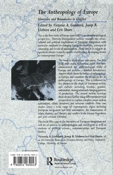Victoria A. Goddard Goldsmiths College,University of London Josep R. Llobera Visiting Professor of Anthropology, University College London Cris Shore Goldsmiths College, University of London