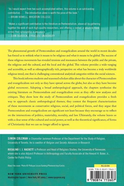 The phenomenal growth of Pentecostalism and evangelicalism around the world in recent decades has forced us to rethink what it means to be religious and what it means to be global. The success of these religious movements has revealed tensions and resonances between the public and the private, the religious and the cultural, and the local and the global. This volume provides a wide ranging and accessible, as well as ethnographically rich, perspective on what has become a truly global religious trend, one that is challenging conventional analytical categories within the social sciences. This book informs students and seasoned scholars alike about the character of Pentecostalism and evangelicalism not only as they have spread across the globe, but also as they have become global movements. Adopting a broadly anthropological approach, the chapters synthesize the existing literature on Pentecostalism and evangelicalism even as they offer new analyses and critiques. They show how the study of Pentecostalism and evangelicalism provides a fresh way to approach classic anthropological themes; they contest the frequent characterization of these movements as conservative religious, social, and political forces; and they argue that Pentecostalism and evangelicalism are significant not least because they encourage us to reflect on the intersections of politics, materiality, morality and law. Ultimately, the volume leaves us with a clear sense of the cultural and social power, as well as the theoretical significance, of forms of Christianity that we can no longer afford to ignore.