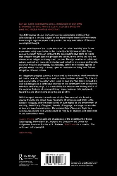 The Anthropology of Love and Anger questions the very foundations of western sociological thought. In their examination of indigenous peoples from across the South American continent, the contributors to this volume have come to realise that western thought does not possess the vocabulary to define even the fundamentals of indigenous thought and practice. The dualisms of public and private, political and domestic, individual and collective, even male and female, in which western anthropology was founded cannot legitimately be applied to peoples whose 'sociality' is based on an 'aesthetics of community'. For indigenous people success is measured by the extent to which conviviality, (all that is peaceful, harmonious and sociable) has been attained. Yet conviviality is not just reliant on love and good but instead on an even balance between all that is constructive, love, and all that is destructive, anger. With case studies from across the South American region, ranging from the (so-called) fierce Yanomami of Venezuela and Brazil to the Enxet of Paraguay, and with discussions on topics from the efficacy of laughter, the role of language, anger as a marker of love and even homesickness, The Anthropology of Love and Anger is a seminal, fascinating work which should be read by all students and academics in the post-colonial world.