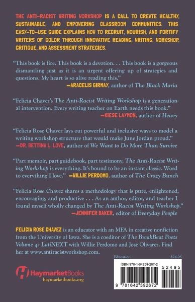 Felicia Rose Chavez is an award-winning educator with an MFA in Creative Nonfiction from the University of Iowa. She is the author of The Anti-Racist Writing Workshop: How to Decolonize the Creative Classroom and co-editor of The BreakBeat Poets Volume 4: LatiNEXT with Willie Perdomo and Jose Olivarez. Chavez served as Program Director to Young Chicago Authors and founded GirlSpeak, a literary webzine for young women. She went on to teach writing at the University of New Mexico, where she was distinguished as the Most Innovative Instructor of the Year, the University of Iowa, where she was distinguished as the Outstanding Instructor of the Year, and Colorado College, where she received the Theodore Roosevelt Collins Outstanding Faculty Award. Her creative scholarship earned her a Ronald E. McNair Fellowship, a University of Iowa Graduate Dean’s Fellowship, a Riley Scholar Fellowship, and a Hadley Creatives Fellowship. Originally from Albuquerque, New Mexico, Felicia currently serves as Scholar-in-Residence in Creativity and Innovation at Colorado College. Find her at www.antiracistworkshop.com.
