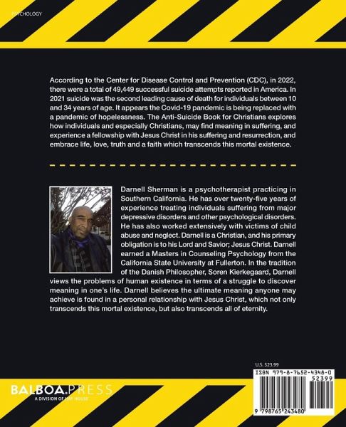According to the Center for Disease Control and Prevention (CDC), in 2022, there were a total of 49,449 successful suicide attempts reported in America. In 2021 suicide was the second leading cause of death for individuals between 10 and 34 years of age. It appears the Covid-19 pandemic is being replaced with a pandemic of hopelessness. The Anti-Suicide Book for Christians explores how individuals and especially Christians, may find meaning in suffering, and experience a fellowship with Jesus Christ in his suffering and resurrection, and embrace life, love, truth and a faith which transcends this mortal existence.
