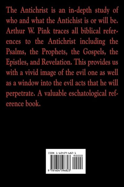 The Antichrist is an in-depth study of who and what the Antichist is or will be. Arthur W. Pink traces all biblical references to the Antichrist including the Psalms, the Prophets, the Gospels, the Epistles, and Revelation. This provides us with a vivid image of the evil one as well as a window into the evil acts that he will perpetrate. A valuable eschatological reference book.