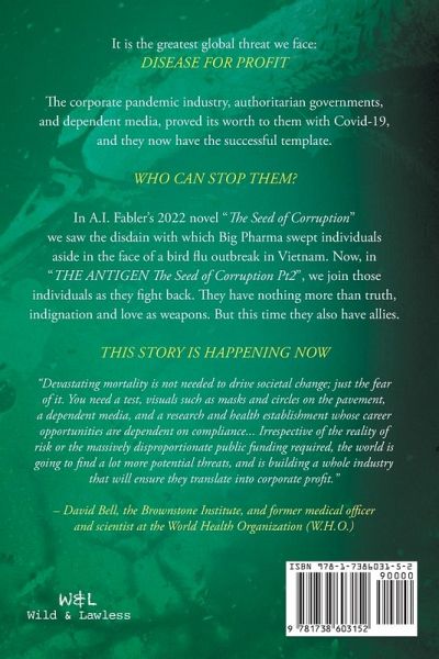 There were two kinds of journalists: lapdogs and watchdogs. Which kind would they be? Disease for profit: it was a massive crime, but those who profited were too powerful to be stopped. They owned the government agencies, the money markets, and the media. For those journalists who knew the truth, knowing it put their lives in danger. The only way for them to be safe was for the whole world to know. But how could they tell the world when their own media bosses were a party to the crime? For this disease to be overcome, they needed to find an antigen. In A.I. Fabler's 2022 novel "The Seed of Corruption" we saw the disdain with which Big Pharma swept individuals aside in the face of a bird flu outbreak in Vietnam. Now, in "The Antigen - The Seed of Corruption Pt 2", we join those individuals as they fight back. They have nothing more than truth, indignation, and love as weapons. But this time they also have allies. This story is happening now. "The Seed of Corruption" Reviewed This book is an exploration of love, life, crime - everything that our lives are about. - Benjamin Franklin Awards Resonating with the hardships of the recent global pandemic, The Seed of Corruption explores a complex world of large corporations and state-sponsored entities who are able to operate in plain sight, no matter how questionable their intent, while average citizens are distracted by the greater implications of a viral pandemic. - BookTrib It is a very thought-provoking read, reflective of the strange, intimidating times that we find ourselves living in, written with aplomb and a wry tone which gives the book an undertone of humor despite the serious matters proposed. - Discovery This is a thought-provoking thriller, with fresh insights. An intriguing journey written with wit and keen insight into deep matters. For those who like intelligent espionage thrillers. The character voices are fresh and likable even when doubting themselves. They display a strong capacity for growth. There is excellent critical thinking and problem solving as they journey to find a solution. Not overly romantic, but the reader sees an adult relationship unfold. - Benjamin Franklin Awards