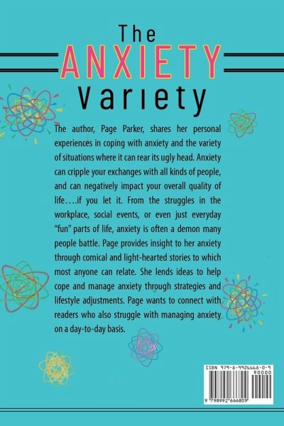 The author, Page Parker, shares her personal experiences in coping with anxiety and the variety of situations where it can rear its ugly head. Anxiety can cripple your exchanges with all kinds of people, and can negatively impact your overall quality of life....if you let it. From the struggles in the workplace, social events, or even just everyday "fun" parts of life, anxiety is often a demon many people battle. Page provides insight to her anxiety through comical and light-hearted stories to which most anyone can relate. She lends ideas to help cope and manage anxiety through strategies and lifestyle adjustments. These include medication through a physician's care, diet, exercise, support, and organization. Page wants to connect with readers who also struggle with managing anxiety on a day-to-day basis.