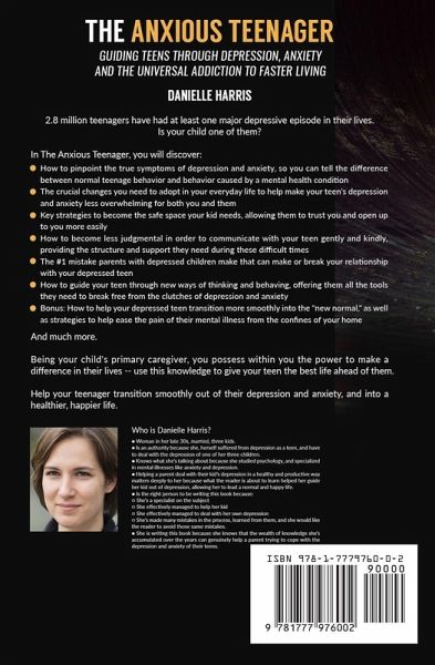 2.8 million teenagers have had at least one major depressive episode in their lives. Is your child one of them? Have you noticed that your kid is always angry or frustrated, even over small matters? Have they lost interest or stopped making an effort to communicate with you or their friends? Are they tired all the time, yet insomniac and always agitated and restless? If you've answered "yes" to any of those questions, then you may be dealing with an anxious and/or depressed teen. Between trying to establish an identity, become more independent, discover their sexuality, take more social risks, and even experiment with alcohol and drugs, this period in your teen's life comes at a high emotional and mental cost. But behind all the natural turmoil of the teenage years may hide a bigger and more treacherous problem that, if left unresolved, can lead to devastating consequences. It may seem overwhelming at first, but you need to know that it's not at all uncommon. In fact, 1 in every 7 teenagers suffers from depression at some point in their lives before turning 18, while anxiety is the most prevalent mental health condition in the world. It is heartbreaking to know that your child is dealing with such a serious mental illness, and yet the pain isn't theirs alone to bear. As a parent, even you may have already paid a hefty price with both your mental and emotional health and may still find yourself confused and sometimes helpless. However, with a little perseverance, there's a lot you can do to help. It starts by becoming the support they need, acquiring the right kind of knowledge and skills to help them transition out of their depression and into a healthier, happier life. In The Anxious Teenager, you will discover:How to pinpoint the true symptoms of depression and anxiety, so you can tell the difference between normal teenage behavior and behavior caused by a mental health condition The crucial changes you need to adopt in your everyday life to help make your teen's depression and anxiety less overwhelming for both you and them Key strategies to become the safe space your kid needs, allowing them to trust you and open up to you more easily How to become less judgmental in order to communicate with your teen gently and kindly, providing the structure and support they need during these difficult times The #1 mistake parents with depressed children make that can make or break your relationship with your depressed teen How to guide your teen through new ways of thinking and behaving, offering them all the tools they need to break free from the clutches of depression and anxiety Bonus: How to help your depressed teen transition more smoothly into the "new normal," as well as strategies to help ease the pain of their mental illness from the confines of your home And much more. It can be difficult to tell if a teen's behavior is normal, or if it's caused by depression and anxiety. With the right guidance, however, this can become much easier. Being your child's primary caregiver, you possess within you the power to make a difference in their lives -- use this knowledge to give your teen the best life ahead of them. If you want to help your teenager transition smoothly out of their depression and anxiety, then scroll up and click the "Add to Cart" button right now.