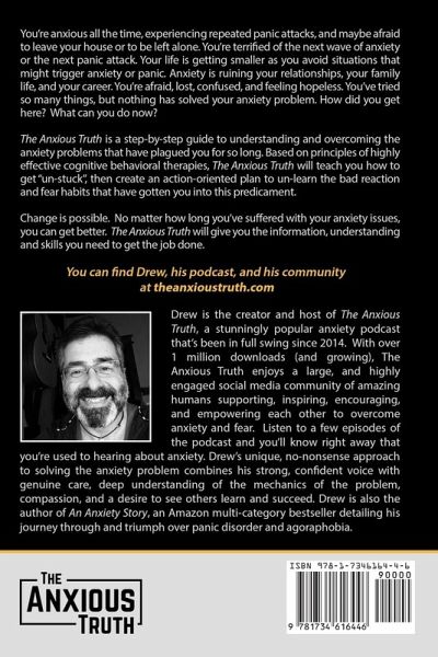The Anxious Truth is a step-by-step guide to understanding and overcoming the anxiety problems that have plagued you for so long. At 70,000 words and 450 printed pages, the Anxious Truth goes well beyond just telling you that you can be OK. It actually tells you exactly how to do it! You're anxious all the time, experiencing panic attacks over and over, and maybe afraid to leave your house or to be left alone for even a few minutes.. You are avoiding simple things like driving, eating in restaurants, attending family functions, or going to the supermarket. You are terrified of the next wave of anxiety or the next panic attack. Your anxiety problems are ruining your relationships, your family life, and your career. Your anxiety problems have you afraid, confused, lost, and feeling hopeless. How did you get here? What went wrong? You've tried so many things, but nothing has cured your anxiety? What can you do now? This book, written by a former anxiety sufferer, best-selling author of "An Anxiety Story", and host of The Anxious Truth podcast will walk you through exactly how you got to where you are today, why you are not broken or ill, and what the true nature of your anxiety disorder is. Next, the book will walk you through what it takes to solve your anxiety problems, how to make an anxiety recovery plan, then how to correctly execute that plan. The Anxious Truth isn't always what you want to hear, but it's what you NEED to hear in order to solve this problem once and for all and move toward the life you so desperately want. Based firmly on the principles of cognitive-behavioral therapies that have been shown over decades to be most effective in treating anxiety problems, the Anxious Truth will teach you how to move past your anxiety symptoms, past endless digging for hidden "root causes", and into an action-oriented plan that will help your brain un-learn the bad reaction and fear habits that have gotten you into this predicament. The Anxious Truth will take the cognitive mechanism that got you into a corner, throw it in reverse, and use it to your advantage, backing you out of this jam and into a life free from irrational fear and needless avoidance. More than just a book, The Anxious Truth goes hand-in-hand with The Anxious Truth podcast (https://theanxioustruth.com) and the growing and vibrant social media community surrounding it. Read the book, listen to five years worth of free podcasts chock full of helpful advice and information, and join a large online community of fellow anxiety sufferers that are done talking about this problem and ready to actually take action to solve it. Change is possible. No matter how long you've suffered with your anxiety issues, you can get better. The Anxious Truth will tell you what you need to hear and will arm you with the information, understanding, and skills you need to get the job done. Let's do this together!