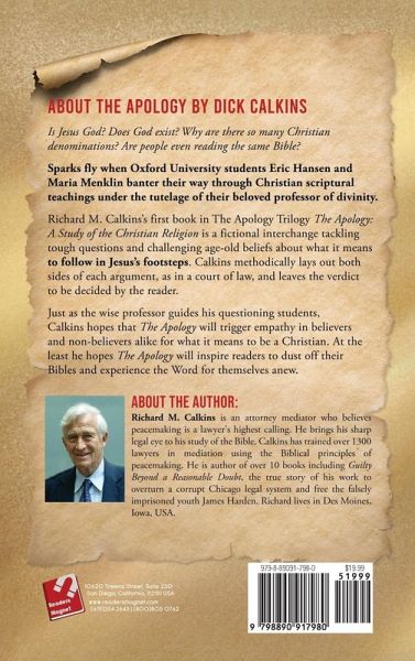 Is Jesus God? Does God exist? Why are there so many Christian denominations? Are people even reading the same Bible? Sparks fly when Oxford University students Eric Hansen and Maria Menklin banter their way through Christian scriptural teachings under the tutelage of their beloved professor of divinity. Richard M. Calkins's first book in The Apology Trilogy The Apology: A Study of the Christian Religion is a fictional interchange tackling tough questions and challenging age-old beliefs about what it means to follow in Jesus's footsteps. Calkins methodically lays out both sides of each argument, as in a court of law, and leaves the verdict to be decided by the reader. Just as the wise professor guides his questioning students, Calkins hopes that The Apology will trigger empathy in believers and non-believers alike for what it means to be a Christian. At the least he hopes The Apology will inspire readers to dust off their Bibles and experience the Word for themselves anew.