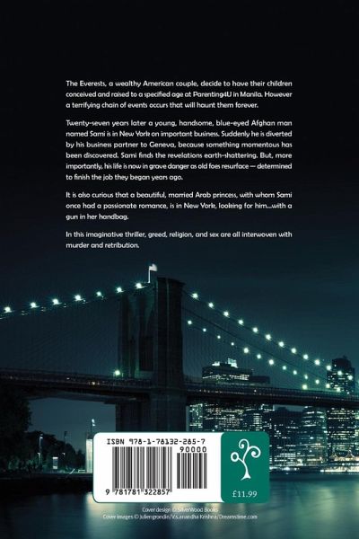 When the Everests, a wealthy American couple, decide to have their children conceived and raised to a specified age at Parenting4U in Manila, a terrifying chain of events occurs that will haunt them forever. Twenty-seven years later a young, handsome, blue-eyed Afghan man named Sami is in New York on important business. Suddenly he is diverted by his business partner to Geneva, because something momentous has been discovered. Sami finds the revelations earth-shattering. But more importantly, his life is now in grave danger as his old foes resurface and are determined to finish the job they began years ago. It is also curious that a beautiful, married Arab princess, with whom Sami once had a passionate romance, is in New York, looking for him...with a gun in her handbag. In this imaginative thriller, greed, religion, and sex are all interwoven with murder and retribution.