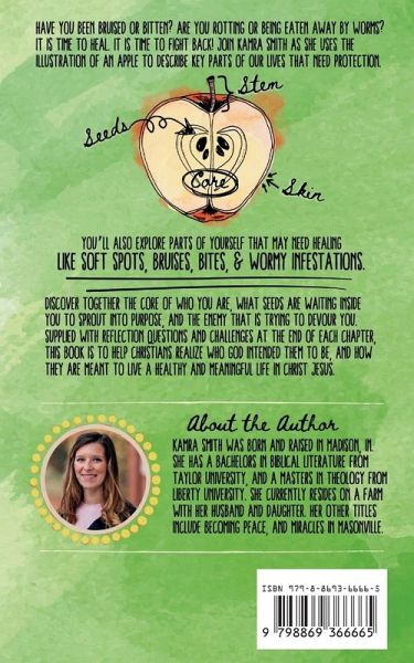 Have you been bruised or bitten? Are you rotting or being eaten away by worms? It is time to heal. It is time to fight back! Join Kamra Smith as she uses the illustration of an apple to describe key parts of our lives that need protection - your Core, Skin, Seeds and Stem. You'll also explore parts of yourself that may need healing - like soft spots, bruises, bites, and wormy infestations. Discover together the core of who you are, what seeds are waiting inside you to sprout into purpose, and the Enemy that is trying to devour you. Supplied with reflection questions and challenges at the end of each chapter, this book is to help Christians realize who God intended them to be, and how they are meant to live a healthy and meaningful life in Christ Jesus.
