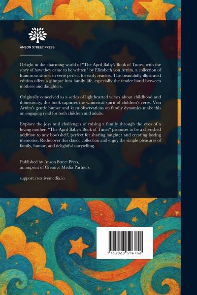 Delight in the charming world of "The April Baby's Book of Tunes, with the story of how they came to be written" by Elizabeth von Arnim, a collection of humorous stories in verse perfect for early readers. This beautifully illustrated edition offers a glimpse into family life, especially the tender bond between mothers and daughters. Originally conceived as a series of lighthearted verses about childhood and domesticity, this book captures the whimsical spirit of children's verse. Von Arnim's gentle humor and keen observations on family dynamics make this an engaging read for both children and adults. Explore the joys and challenges of raising a family through the eyes of a loving mother. "The April Baby's Book of Tunes" promises to be a cherished addition to any bookshelf, perfect for sharing laughter and creating lasting memories. Rediscover this classic collection and enjoy the simple pleasures of family, humor, and delightful storytelling. This work has been selected by scholars as being culturally important, and is part of the knowledge base of civilization as we know it. This work is in the public domain in the United States of America, and possibly other nations. Within the United States, you may freely copy and distribute this work, as no entity (individual or corporate) has a copyright on the body of the work. Scholars believe, and we concur, that this work is important enough to be preserved, reproduced, and made generally available to the public. We appreciate your support of the preservation process, and thank you for being an important part of keeping this knowledge alive and relevant.
