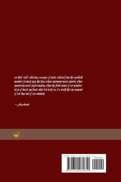 Our third "wall" collection, a nosegay of poetry collected from the Aquillrelle members Facebook page, that place where experiment meets expertise, where amateurism meets professionalism, where the fertile minds of our members let go of beauty and heart. Allow it to touch you, it is worth that one moment of your time and of your attention...