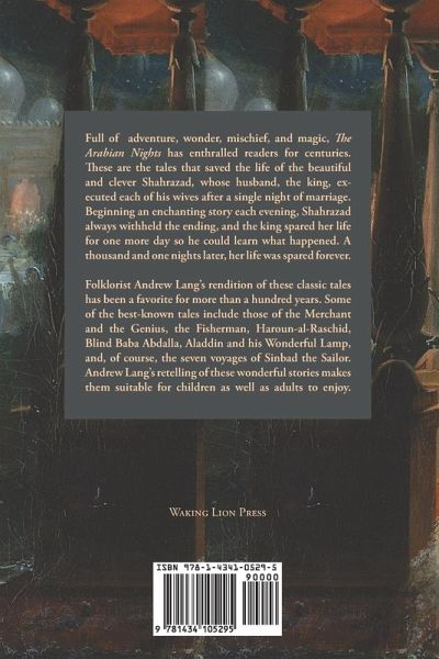 Full of adventure, wonder, mischief, and magic, The Arabian Nights has enthralled readers for centuries. These are the tales that saved the life of the beautiful and clever Shahrazad, whose husband, the king, executed each of his wives after a single night of marriage. Beginning an enchanting story each evening, Shahrazad always withheld the ending, and the king spared her life for one more day so he could learn what happened. A thousand and one nights later, her life was spared forever. Folklorist Andrew Lang's rendition of these classic tales has been a favorite for more than a hundred years. Some of the best-known tales include those of the Merchant and the Genii, the Fisherman, Haroun-al-Raschid, Blind Baba Abdalla, Aladdin and his Wonderful Lamp, and, of course, the seven voyages of Sinbad the Sailor. Andrew Lang's retelling of these wonderful stories makes them suitable for children as well as adults to enjoy.