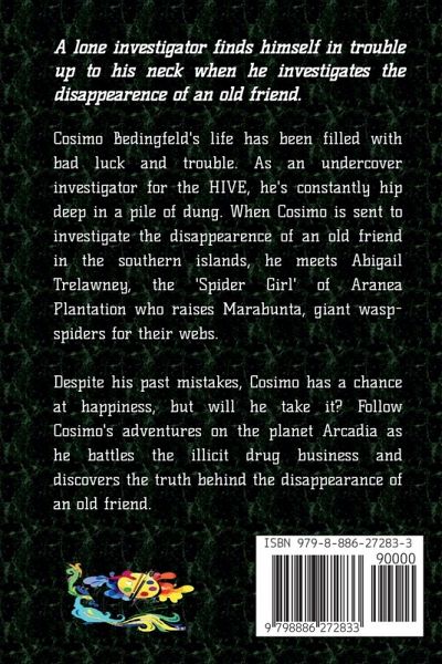 Return To Arcadia For A New Outlawed Colony Adventure! A lone investigator finds himself in trouble up to his neck when he uncovers the murder of an old friend. The illicit drug business followed man when he colonized new planets, creating deadly new drugs with new names like Love Potion. Cosimo Bedingfeld's life has been filled with bad luck and trouble. As an undercover investigator for the HIVE, he's constantly hip deep in a pile of dung. When Cosimo is sent to investigate the murder of an ex-HIVE agent in the southern islands, he meets Abigail Trelawney, the 'Spider Girl' of Aranea plantation who raises Marabunta, giant wasp-spiders for their webs. Despite his past mistakes, Cosimo has a chance at happiness, but will he take it? Follow Cosimo's adventures on the planet Arcadia as he battles the illicit drug business and discovers the truth behind the murder of an old friend. If you enjoyed the sci-fi thriller film Gattaca, or The Andromeda Strain by Michael Crichton, you'll love this suspenseful, action-packed novel.