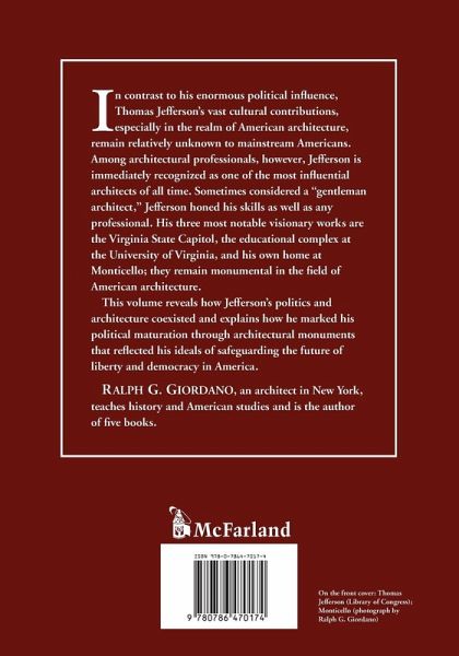 In contrast to his enormous political influence, Thomas Jefferson's vast cultural contributions, especially in the realm of American architecture, remain relatively unknown to mainstream Americans. Among architectural professionals, however, Jefferson is immediately recognized as one of the most influential architects of all time. Although he was considered a "gentleman architect," Jefferson honed his skills as well as any professional. His three most notable visionary works at the Virginia State Capitol, the educational complex at the University of Virginia, and his own home at Monticello remain monumental in the field of American architecture and society. This volume reveals how Jefferson's politics and architecture coexisted and explains how he marked his political maturation through corresponding architectural monuments that reflected his ideals. Consequently, Jefferson provided America with a combined architectural and political ideology with the intention of safeguarding the future of liberty and democracy in America.