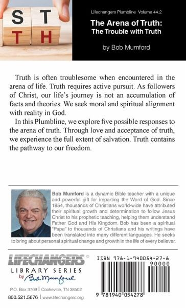 Truth is often troublesome when encountered in the arena of life. Truth requires active pursuit. As followers of Christ, our life's journey is not an accumulation of facts and theories. We seek moral and spiritual alignment with reality in God. In this Plumbline, we explore five possible responses to the arena of truth. Through love and acceptance of truth, we experience the full extent of salvation. Truth contains the pathway to our freedom.