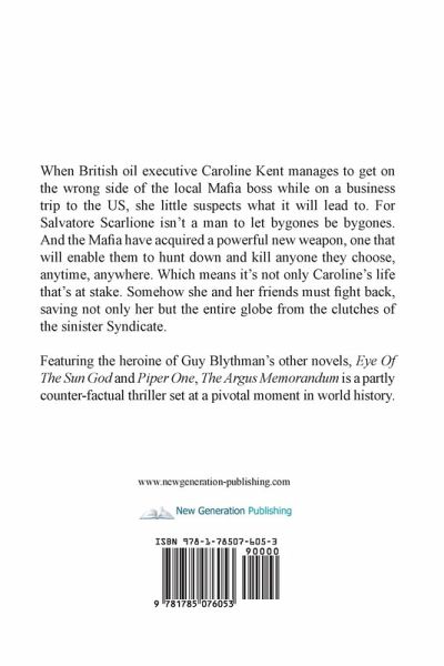 When British oil executive Caroline Kent manages to get on the wrong side of the local Mafia boss while on a business trip to the US, she little suspects what it will lead to. For Salvatore Scarlione isn't a man to let bygones be bygones. And the Mafia have acquired a powerful new weapon, one that will enable them to hunt down and kill anyone they choose, anytime, anywhere. Which means it's not only Caroline's life that's at stake. Somehow she and her friends must fight back, saving not only her but the entire globe from the clutches of the sinister Syndicate. Featuring the heroine of Guy Blythman's other novels, Eye Of The Sun God and Piper One, The Argus Memorandum is a partly counter-factual thriller set at a pivotal moment in world history.
