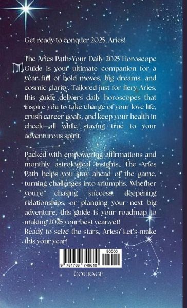 The Aries Path: Your Daily 2025 Horoscope Guide is a dynamic and empowering tool created specifically for Aries individuals seeking daily cosmic insights and guidance throughout 2025. Known for their boldness, independence, and passion, Aries readers will find this guide perfectly tailored to their energetic nature. Each day offers personalized horoscopes that provide direction in love, career, health, and personal growth, helping Aries navigate the year with clarity and confidence. This guide taps into Aries' adventurous spirit and provides empowering daily affirmations to keep readers motivated and focused on their goals. Whether you're seeking success in your career, deepening relationships, or embarking on new adventures, The Aries Path will help you make the most of every opportunity that comes your way in 2025. Each month begins with an overview of key astrological themes, helping Aries readers prepare for significant cosmic shifts and challenges. These overviews ensure you're always in sync with the energy of the universe, enabling you to harness your natural leadership qualities and make decisions that align with your goals. Perfect for astrology enthusiasts and Aries looking to start each day with guidance and inspiration, The Aries Path offers practical wisdom grounded in your unique astrological energy. Whether you're facing challenges or chasing new dreams, this book gives you the tools to make thoughtful decisions and embrace your fiery, ambitious path. Designed to support you through every twist and turn of the year, The Aries Path is more than just a horoscope guide-it's your personal roadmap for success, growth, and empowerment throughout 2025. Take charge of your journey, trust your instincts, and let the stars light your way. Unlock your potential and seize the year ahead with The Aries Path: Your Daily 2025 Horoscope Guide!