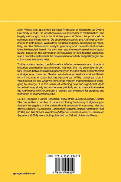 The book is the first English translation of John Wallis's Arithmetica Infinitorum (1656), a key text on the seventeenth-century development of the calculus. Accompanied with annotations and an introductory essay, the translation makes Wallis's work fully available for the first time to modern readers. It shows how Wallis drew on some of the most important new ideas from the preceding twenty years, and took them forward to lay the foundations on which Newton was to build. Above all, the book displays the crucial mid-seventeenth-century shift from geometry to arithmetic and algebra as the primary language of mathematics.