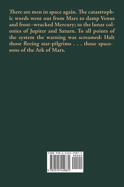 There are men in space again. The catastrophic words went out from Mars to damp Venus and frost--wracked Mercury; to the lunar colonies of Jupiter and Saturn. To all points of the system the warning was screamed: Halt those fleeing star-pilgrims . . . those space-sons of the Ark of Mars. Leigh Brackett was the undisputed Queen of Space Opera and the first women to be nominated for the coveted Hugo Award. She wrote short stories, novels, and scripts for Hollywood. She wrote the first draft of the Empire Strikes Back shortly before her death in 1978.
