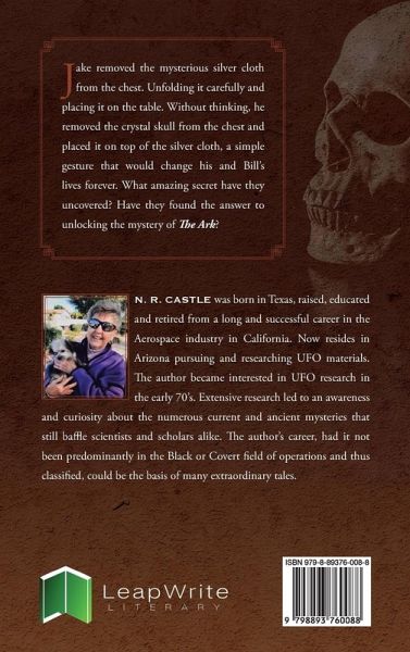 Jake removed the mysterious silver cloth from the chest. Unfolding it carefully and placing it on the table. Without thinking, he removed the crystal skull from the chest and placed it on top of the silver cloth, a simple gesture that would change his and Bill's lives forever. What amazing secret have they uncovered? Have they found the answer to unlocking the mystery of The Ark?
