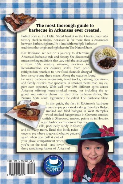 Pulled pork in the Delta. Sliced brisket in the Ozarks. Juicy ribs. Savory chicken thighs. Arkansas is far more than a crossroads between barbecue giants. It's a land with multiple barbecue traditions that originated right here in The Natural State. Kat Robinson set out on a journey to determine Arkansas's barbecue style and history. She discovered meat smoking traditions that vary with the landscape - from 16th century smoking practices to Reconstruction era culinary shifts, from post-refrigeration practices to how food channels changed how we consume these meats. Along the way, she found far more barbecue restaurants, food trucks, catering operations, and family eateries that specialize in smoked meats than any expert ever expected. With well over 350 different spots across Arkansas offering house-smoked meats, not including the regional and national chains that also offer barbecue dishes, The Natural State could legitimately be called The Barbecue State. In this guide, the first in Robinson's barbecue series, enjoy pork steaks along Crowley's Ridge, smoked and fried bologna in West Memphis, wood smoked hanger steak in Gravette, smoked catfish in Sherwood, smoked prime rib in Horatio, vegan barbecue creations in Fayetteville, pork belly candy in Searcy, and so many more. Read this book twice - once to see where to go and what to get, and again when you pull it out of your glove compartment when you're on the road - and savor these tantalizing flavors of Arkansas!