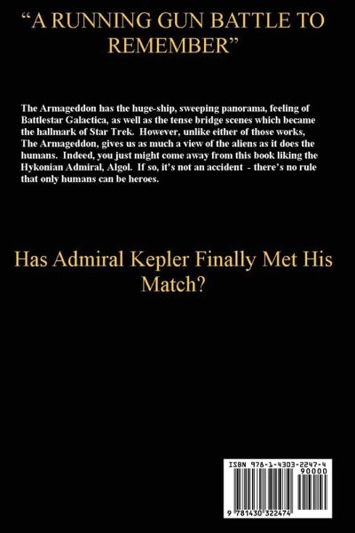 BOOK 1 OF THE CONTINUUM (Maiden voyage of the Armageddon) The Armageddon has the huge-ship, sweeping panorama, feeling of Battlestar Galactica, as well as the tense bridge scenes which became the hallmark of Star Trek. However, unlike either of those works. The Armageddon gives us as much a view of the aliens as it does the humans. Indeed, you just might come away from this book liking the Hykonian Admiral, Algol. If so, it's not an accident - there's no rule that only humans can be heroes.