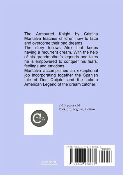 The Armoured Knight by Cristina Montalva teaches children how to face and overcome their bad dreams. The story follows Alex that keeps having a recurrent dream. With the help of his grandmother's legends and tales he is empowered to conquer his fears, feelings and emotions. Montalva accomplishes an exceptional job incorporating together the spanish tale of Don Quijote, and the Lakota American Legends of the dream catcher.