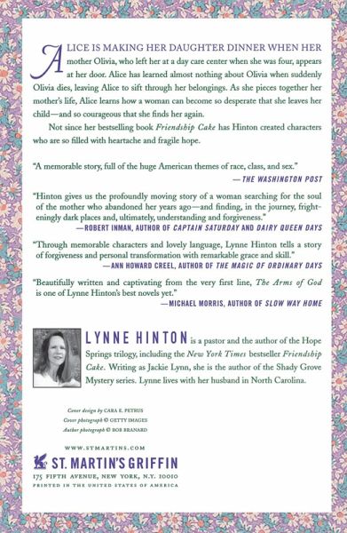 Alice is making her daughter dinner when her mother Olivia, who left her at a day care center when she was four, appears at her door. Alice has learned almost nothing about Olivia, when suddenly Olivia dies, leaving Alice to sift through her belongings. As she pieces together her mother's life, Alice learns how a woman can become so desperate that she leaves her child-- and so courageous that she finds her again. Not since her bestselling book The Friendship Cake has Hinton created characters who are so filled with heartache and fragile hope.