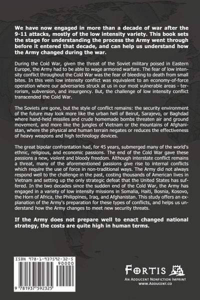During the Cold War, given the threat of the Soviet military poised in Eastern Europe, the Army had to be able to wage armored warfare. The fear of low intensity conflict throughout the Cold War was the fear of bleeding to death from small bites. In this vein low intensity conflict was equivalent to an economy-of-force operation where our adversaries struck at us in our most vulnerable areas - terrorism, subversion, and insurgency. But, the challenge of low intensity conflict transcended the Cold War. The Soviets are gone, but the style of conflict remains: the security environment of the future may look more like the urban hell of Beirut, Sarajevo, or Baghdad where hand-held missiles and crude homemade bombs threaten air and ground movement, and more like the jungles of Vietnam or the mountains of Afghanistan, where the physical and human terrain negates or reduces the effectiveness of heavy weapons and high technology devices. Despite a large number of works that dealt with some aspect of low intensity conflict, none focused exclusively on the evolution of the Army's response to this security challenge. Understanding this evolution is important because the problems of terrorism, insurgency, peacekeeping, and contingency operations - the categories of low intensity conflict - took on new relevance in a world without the Soviet Union. The great bipolar confrontation had, for 45 years, submerged many of the world's ethnic, religious, and economic passions. The end of the Cold War gave these passions a new, violent and bloody freedom. Although interstate conflict remains a threat, many of the aforementioned passions give rise to internal conflicts which require the use of force in non-traditional ways. The Army did not respond well to the challenge in the past, costing thousands of American lives and setting up the only strategic defeat that the United States has suffered. By the early 1990s, the United States government once again determined that it wanted the capability to respond to these challenges. The changes in the early 1990s to the national strategy and the subordinate military strategy placed far greater emphasis on low intensity missions for the Army than had been the case since the early 1960s. Much of the post-Cold War Army would be based in the continental United States, and organized for rapid deployability in response to regional crises. Thus, the greater focus on conflict at the lower end of the spectrum colored the Army's, as well as the nation's, foreign policy abilities in the rest of the decade. Understanding the process of organizational change in the military, then, is necessary to the appropriate management of the Army's mission. If the Army does not prepare well to enact changed national strategy, the costs are quite high in human terms. And, as the defeat in Vietnam demonstrated, the political costs to the nation are quite high, too. We have now engaged in more than a decade of war after the 9-11 attacks, mostly of the low intensity variety. This book sets the stage for understanding the process the Army went through before it entered that decade, and can help us understand how the Army changed during the war.