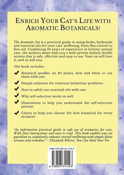 This book is intended as a guide for cat lovers and guardians who would like to use aromatic extracts in the routine management of health and well-being for their cat. There are many benefits to using herbs and aromatic extracts for cats. Properly used, they can help your beloved feline be happy and healthy in body, mind and soul. This book gives you easy-to-use, practical information on how herbs, hydrosols and essential oils can support your cat's wellbeing. You may have heard that essential oils should never be used with cats? Well, this is not necessarily so, used correctly they can be a useful tool in your cat's wellness regime. In this book we will share how we use them with our own cats and those of clients, and how you too can use them safely for cats in your care. Our recommended protocol is based on animal self-selection, a safe, effective and non-invasive system. Offering aromatic extracts like this provides environmental enrichment, as well as helping with a variety of conditions, whether physical, mental or emotional. This simple, practical guide to aromatic botanicals for cats will give you confidence to use herbs, hydrosols and essential oils to support physical, mental and emotional wellbeing.