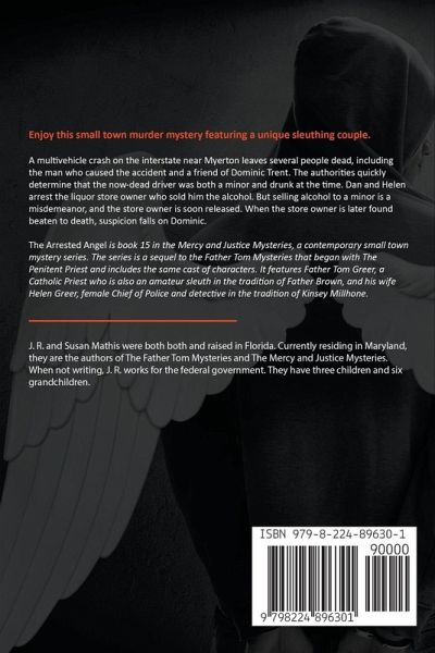 Enjoy this small town murder mystery featuring a unique sleuthing couple. A multivehicle crash on the interstate near Myerton leaves several people dead, including the man who caused the accident and a friend of Dominic Trent. The authorities quickly determine that the now-dead driver was both a minor and drunk at the time. Dan and Helen arrest the liquor store owner who sold him the alcohol. But selling alcohol to a minor is a misdemeanor, and the store owner is soon released. When the store owner is later found beaten to death, suspicion falls on Dominic. The Arrested Angel is book 15 in the Mercy and Justice Mysteries, a contemporary small town mystery series. The series is a sequel to the Father Tom Mysteries that began with The Penitent Priest and includes the same cast of characters. It features Father Tom Greer, a Catholic Priest who is also an amateur sleuth in the tradition of Father Brown, and his wife Helen Greer, female Chief of Police and detective in the tradition of Kinsey Millhone.