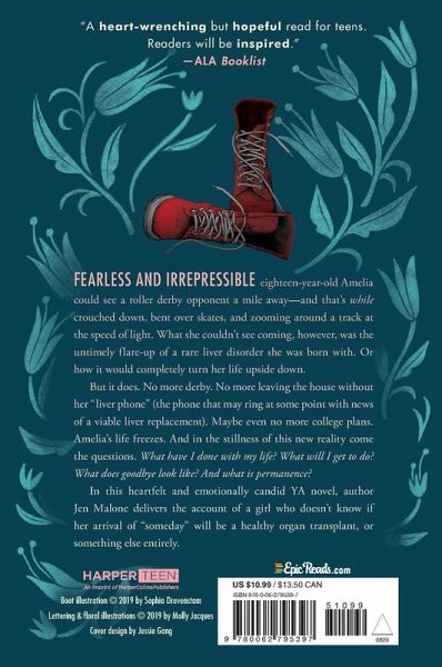 In this emotionally candid contemporary YA, author Jen Malone delves into the world of a teen whose life is brought to an abrupt halt when she learns she’s in dire need of an organ transplant. Hard-charging and irrepressible, eighteen-year-old Amelia Linehan could see a roller derby opponent a mile away—and that’s while crouched down, bent over skates, and zooming around a track at the speed of light. What she couldn’t see coming, however, was the flare-up of the rare liver disorder she was born with. But now it’s the only thing she—and everyone around her—can think about. With no guarantee of a viable organ transplant, everything Amelia’s been sure of—like college plans or the possibility of one day falling in love—has become a huge question mark, threatening to drag her down into a sea of what-ifs she’s desperate to avoid. Then a friend from the past shows up. With Will, it’s easy to forget about what’s lurking between the lightness of their time together. She feels alive when all signs point elsewhere. But with the odds decidedly not in her favor, Amelia knows this feeling can’t last forever. After all, what can?