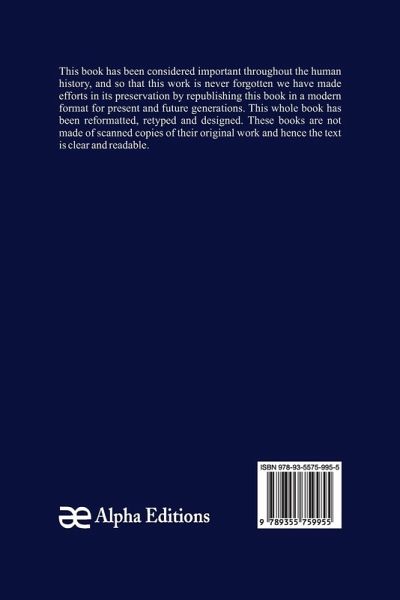 This book has been considered important throughout the human history, and so that this work is never forgotten we have made efforts in its preservation by republishing this book in a modern format for present and future generations. This whole book has been reformatted, retyped and designed. These books are not made of scanned copies and hence the text is clear and readable.