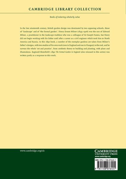In the late nineteenth century, British garden design was dominated by two opposing schools, those of 'landscape' and of 'the formal garden'. Henry Ernest Milner (1845-1906) was the son of Edward Milner, a practitioner in the landscape tradition who was a colleague of Sir Joseph Paxton, but Henry did not begin working with his father until after a career as a civil engineer which took him to North America and Russia. In this 1890 book, a number of the exemplar gardens are taken from Milner's father's designs, with two studies of his own work (one in England and one in Hungary) at the end, and he surveys the whole 'art and practice', from aesthetic theory to building and planting, with plans and illustrations. Reginald Blomfield's 1892 The Formal Garden in England (also reissued in this series) was written partly as a response to this work.