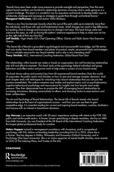 The Art and Psychology of Board Relationships: The Secret Life of Boards reveals why board relationships lie at the heart of organisational success - and how you can use them to gain competitive edge. It is essential reading for current and aspiring board members, coaches, facilitators and anyone with an interest in boardroom dynamics.