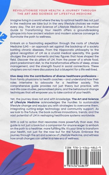 Revolutionise Your Health: A Journey Through the Art and Science of Lifestyle Medicine Imagine living in a world where the key to optimal health lies not just in the medicine we take but in the very lifestyle choices we make every day. The Art and Science of Lifestyle Medicine: A Practical Guide to Transforming Your Health offers a groundbreaking glimpse into how ancient wisdom and modern science converge to illuminate the path to wellness. Embark on a fascinating expedition through the roots of Lifestyle Medicine (LM) - an approach set against the backdrop of a society battling chronic diseases. From the Hippocratic philosophy to the global recognition of LM as a crucial medical specialty, this guide divulges the pivotal moments and key figures that have shaped the field. Discover the six pillars of LM, from the power of a whole food, plant-predominant diet, to the transformative effects of sleep, stress management, and the strength found in social connections. These chapters are not mere discussions but a blueprint for a life well-lived. Dive deep into the contributions of diverse healthcare professions - from family physicians to health coaches - and understand how their roles intertwine to advocate for a healthier society. This comprehensive guide provides not just theory but practice, with real-life case studies, personalised plans, and the behavioural change techniques that will empower you to take control of your health. Yet, the journey does not end with knowledge. The Art and Science of Lifestyle Medicine acknowledges the hurdles to sustainable lifestyle change and equips you with strategies to overcome them, integrating cutting-edge technology and community support. As we look to the future, the book outlines innovations, trends, and the vast potential of LM in reshaping healthcare systems worldwide. With a call to action that resonates more powerfully than ever, this guide is not just a book but a companion for anyone eager to embark on the path to a healthier, more fulfilling life. It's your time to transform your health, not just for the now but for the future. Embrace the journey through the art and science of Lifestyle Medicine, and witness how small changes can usher in a new era of wellness.