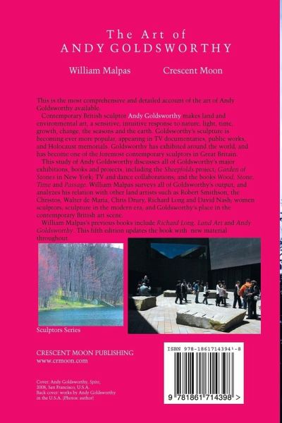 THE ART OF ANDY GOLDSWORTHY This is the most comprehensive and detailed study of British artist Andy Goldsworthy, and is the only full-length exploration of Goldsworthy and his art available anywhere. Fully illustrated, with a revised text. Bibliography and notes. Harback and paperback available. www.crmoon.com EXTRACT FROM THE CHAPTER ON GOLDSWORTHY'S LEAFWORKS It is the leafworks that are the most colourful of Andy Goldsworthy's sculptures. What the leaf sculptures show is how beautiful the colours of nature are: Goldsworthy shows the viewer these subtle colours by contrasting one leaf with another. Maple patch grouped the red/ orange/ yellow of Japanese maple leaves together; Poppy leaves contrasted the red poppy leaves against the mid-green of an elderberry bush; a Stone Wood sculpture of 1992 consisted of poppy leaves wrapped around a hazel branch, the red constrasting vividly with the wet green leaves; Dock Leaves interwove red leaves in green grass stalks. Two sycamore leafworks of 1980 and 1981 are very simple: a leaf black from cow shit is placed against pale Autumn leaves; another leaf, bleached white, is set down on a bed of dark leaves. He pins together two colours of sycamore leaves (sycamore is a favourite Goldsworthy medium) in Sycamore leaf sections (1988), and hangs the line of leaves from a tree. Shot with the sun behind them, the photograph of the leaves shows them glowing green and gold, the two classic colours of poetry and alchemy. AUTHOR BIOGRAPHY William Malpas has written books on Richard Long and land art, as well as three books on Andy Goldsworthy, including the forthcoming Andy Goldsworthy In America. Malpas's books on Richard Long and Andy Goldsworthy are the only full-length studies of these artists available. REVIEW ON AMAZONA happily received gift. It's worth the price for one who wants a scholarly while earthy (sorry, couldn't help it) approach to the work. There's a quirkiness about the writing style that is engaging and honest. I'm glad I have the book and will reread it as I purchase other books on Goldsworthy where the work is shown via great photography. REVIEW ON AMAZONThis is a chatty informational book. It has stories of many artists that have been associated with Andy Goldsworthy in his long career as a contemporary nature sculptor. If you are looking for a personal history this is a book for you.REVIEW ON AMAZONI'm no expert on visual art, nor would I claim to be, but I found this to be a useful book, and the only one I've been able to find about the work of Andy Goldsworthy. The author has taken the time to round up a large amount of varied source material which makes this book well worth seeking out.