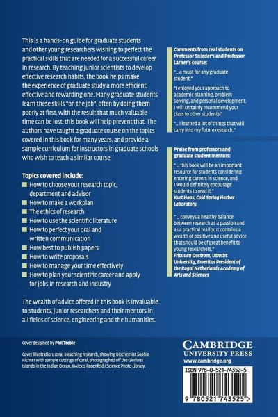 This is a hands-on guide for graduate students and young researchers wishing to perfect the practical skills needed for a successful research career. By teaching junior scientists to develop effective research habits, the book helps to make the experience of graduate study a more efficient and rewarding one. The authors have taught a graduate course on the topics covered for many years, and provide a sample curriculum for instructors in graduate schools wanting to teach a similar course. Topics covered include choosing a research topic, department, and advisor; making workplans; the ethics of research; using scientific literature; perfecting oral and written communication; publishing papers; writing proposals; managing time effectively; and planning a scientific career and applying for jobs in research and industry. The wealth of advice is invaluable to students, junior researchers and mentors in all fields of science, engineering, and the humanities. The authors have taught a graduate course on the topics covered for many years, and provide a sample curriculum for instructors in graduate schools wanting to teach a similar course. The sample curriculum is available in the book as Appendix B, and as an online resource.