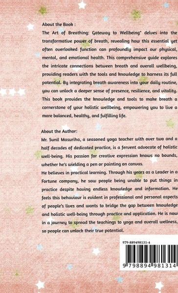 The Art of Breathing: Gateway to Wellbeing" delves into the transformative power of breath, revealing how this essential yet often overlooked function can profoundly impact our physical, mental, and emotional health. This comprehensive guide explores the intricate connections between breath and overall wellbeing, providing readers with the tools and knowledge to harness its full potential. By integrating breath awareness into your daily routine, you can unlock a deeper sense of presence, resilience, and vitality. This book provides the knowledge and tools to make breath a cornerstone of your holistic wellbeing, empowering you to live a more balanced, healthy, and fulfilling life