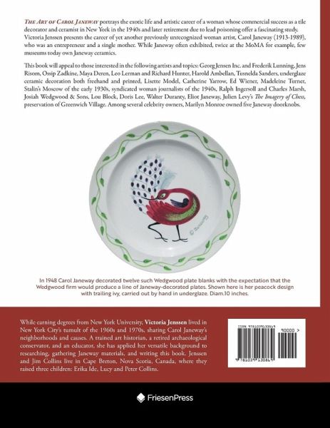 The Art of Carol Janeway portrays the exotic life and artistic career of a woman whose commercial success as a tile decorator and ceramist in New York in the 1940s and later retirement due to lead poisoning offer a fascinating study. Victoria Jenssen presents the career of yet another previously unrecognized woman artist, Carol Janeway (1913-1989), who was an entrepreneur and a single mother. While Janeway often exhibited, twice at the MoMA for example, few museums today own Janeway ceramics. This book will appeal to those interested in the following artists and topics: Georg Jensen Inc. and Frederik Lunning, Jens Risom, Ossip Zadkine, Maya Deren, Leo Lerman and Richard Hunter, Harold Ambellan, Tusnelda Sanders, underglaze ceramic decoration both freehand and printed, Lisette Model, Catherine Yarrow, Ed Wiener, Madeleine Turner, Stalin's Moscow of the early 1930s, syndicated woman journalists of the 1940s, Ralph Ingersoll and Charles Marsh, Josiah Wedgwood & Sons, Lou Block, Doris Lee, Walter Duranty, Eliot Janeway, Julien Levy's The Imagery of Chess, preservation of Greenwich Village. Among several celebrity owners, Marilyn Monroe owned five Janeway doorknobs.